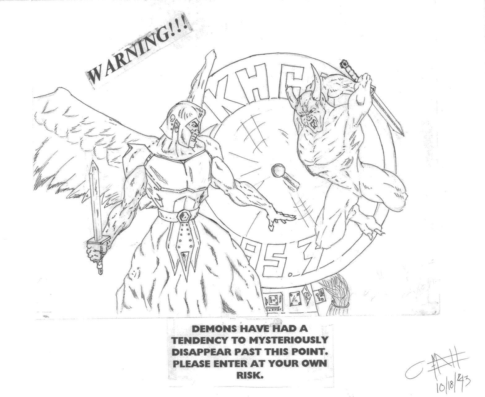 Zinc / sketches / 1993 / Dish October 18, 1993 Demon's gonna get it. A little artwork I did for a Christian radio station in Manhattan, Kansas when I was in high school.